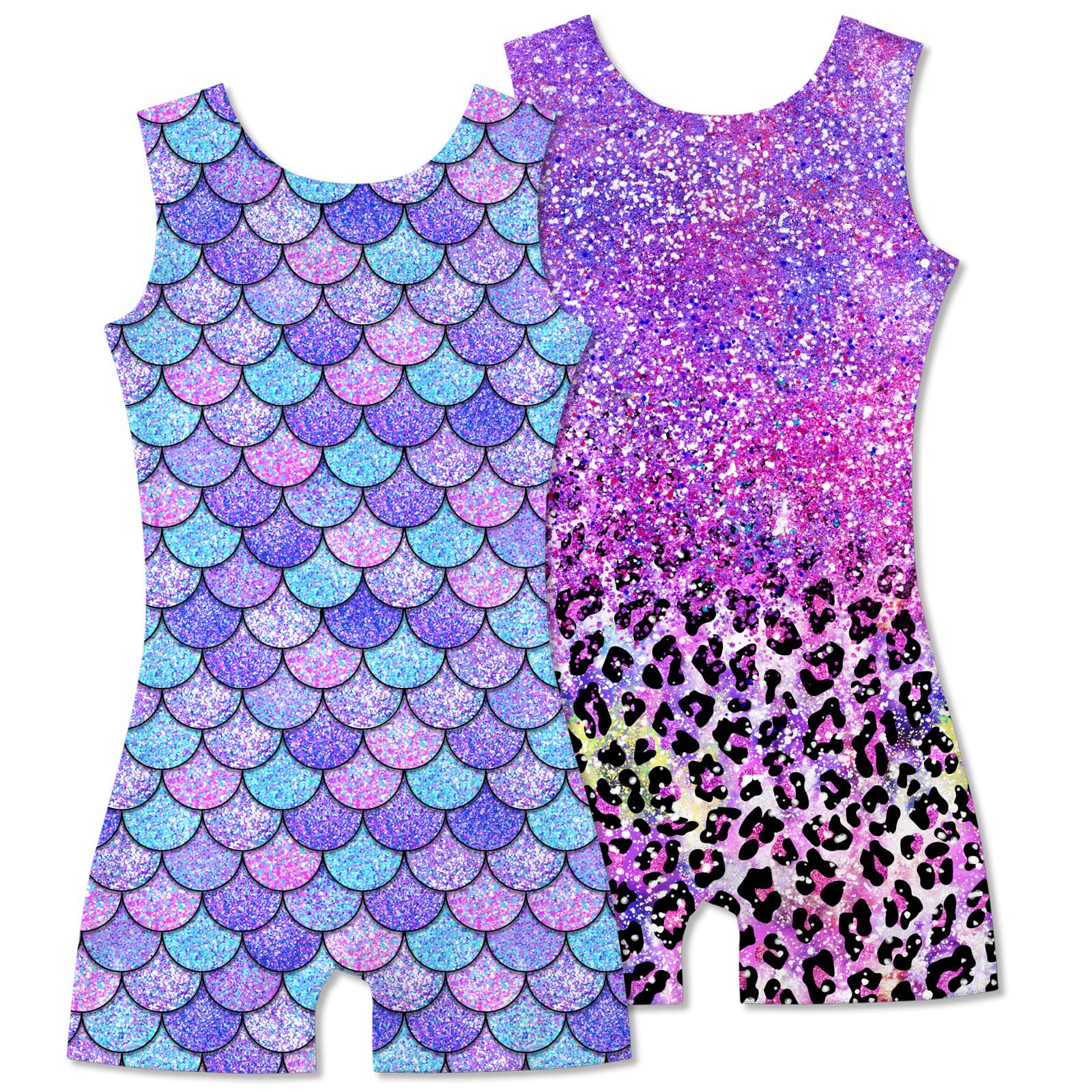 Aideaone 2 Pack Gymnastics Leotards for Girls Sparkly Toddler Biketards with Shorts Kids Unitard Dance Sportswear 3-10T