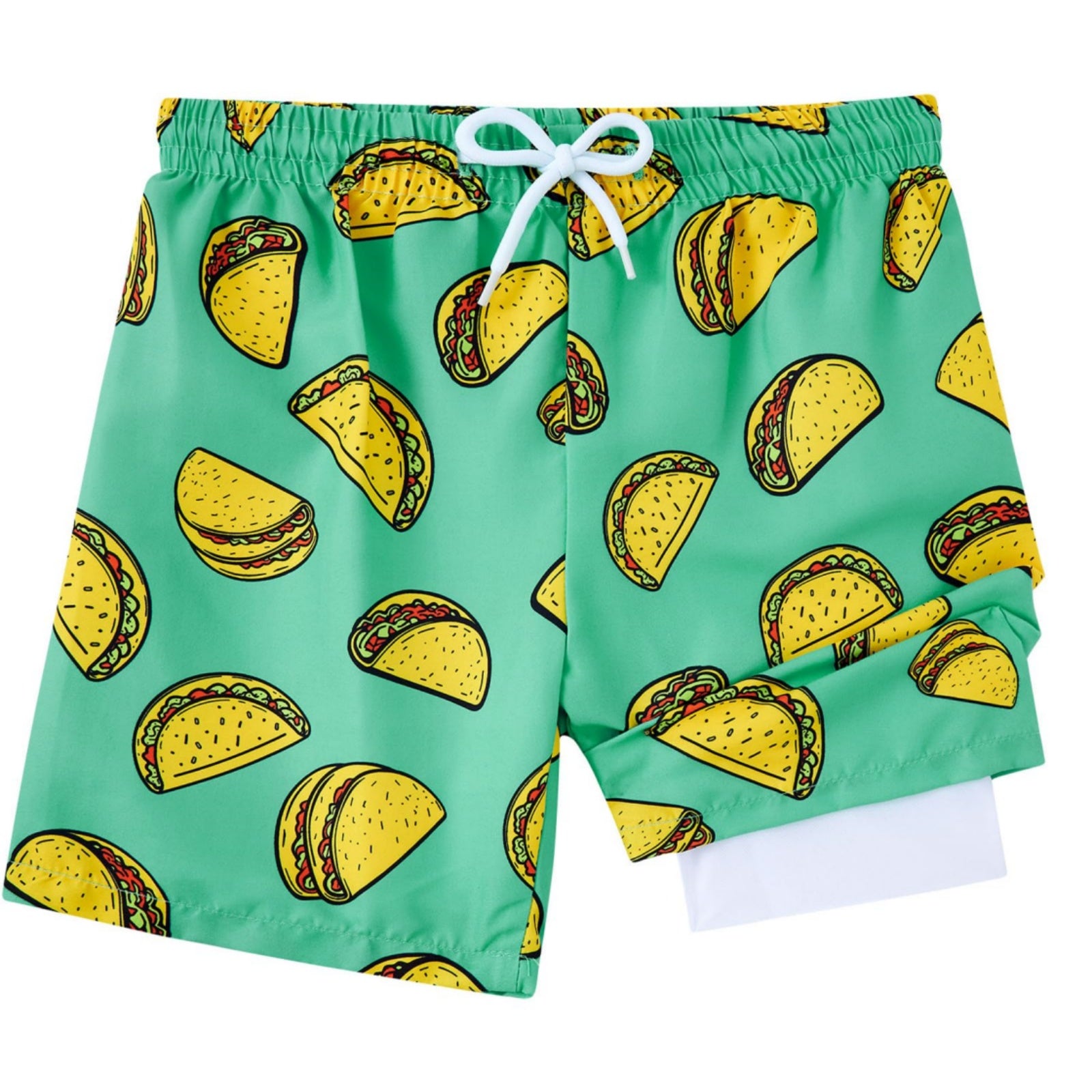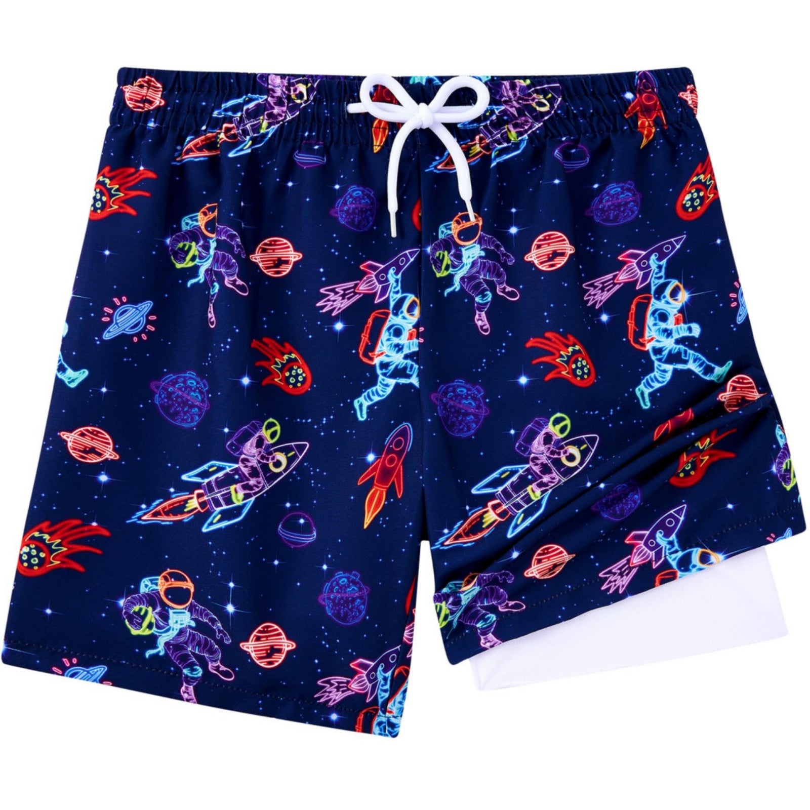 Aideaone Boys Swim Trunks with Mesh Liner Quick Dry Toddler Boy Swim Shorts Kids Bathing Suit with Boxer 4-12Y