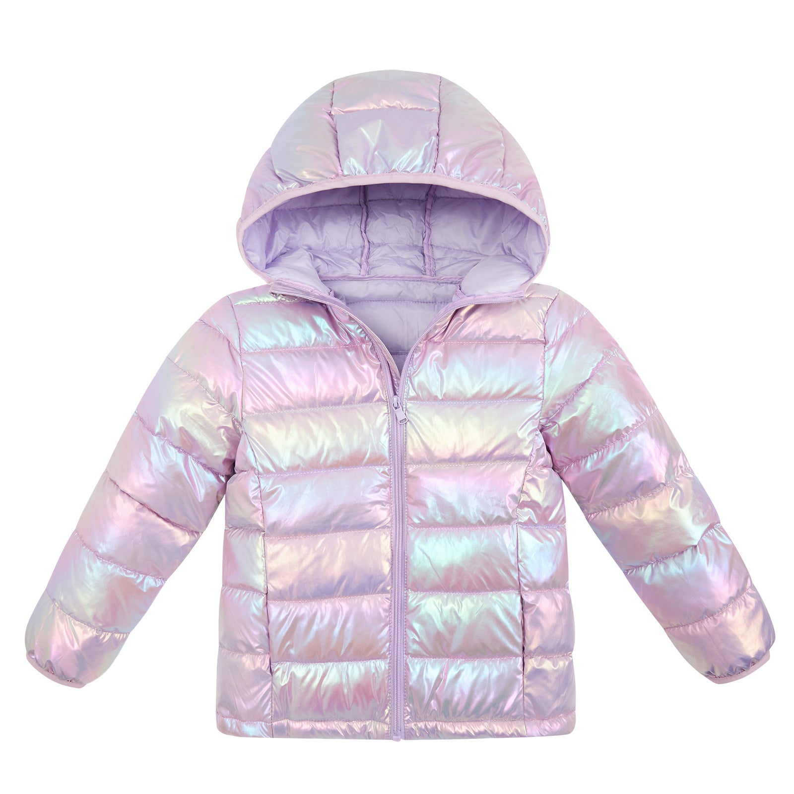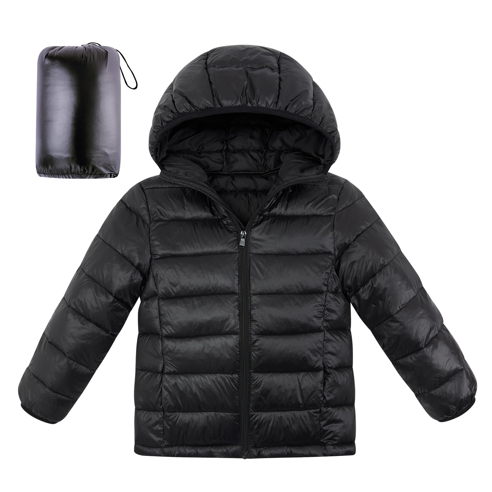 Aideaone Girls Puffer Jacket Packable Lightweight Down-Alternative Hooded Winter Coat Shiny Outerwear for Kids 10-12Years